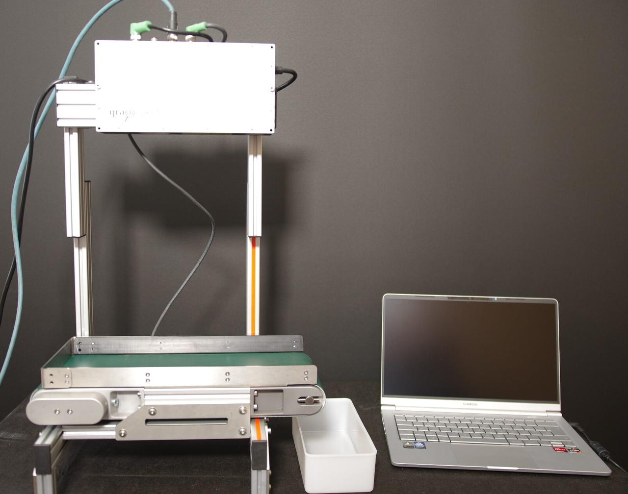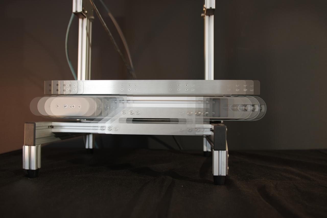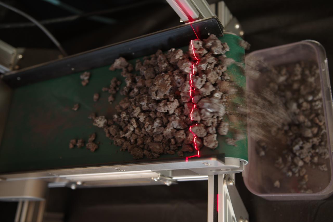 High-precision (<0.1mm) laser scanner works in tandem with precise conveyor band. As a safety measure, the conveyor motor is programmed with torque limitation, to be sufficient for probe transport but cause no harm in case of accidental operator contact. Laser data are fed to the computer which is able to reconstruct the material surface with high accuracy for subsequent analysis.